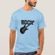 Bold black and white design features the word "ROCK" boldly integrated with a sleek electric guitar silhouette, accented by stars for high-energy rock vibe. Perfect for t-shirt, this minimalist graphic captures raw rock 'n' roll spirit on premium fabric.