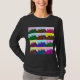 A pop art alcança um novo ápice com doze variações de cores múltiplas no estilo impressão de tela de uma foto de três pombos sentados no telhado.