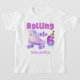 Este design púrpura e giro apresenta a frase "Rolando em 6". É perfeito para a comemoração de aniversário de um skater roller.