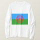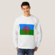 Esta design apresenta a bandeira romani, que é a bandeira internacional das pessoas romanichéis. A bandeira é constituída por um fundo azul e verde, representando os céus e a terra, respectivamente; contém também uma chacra vermelha de 16 raios, ou uma cartela, no centro, que representa a tradição itinerante das pessoas romanichéis e é também uma homenagem à bandeira da Índia. A bandeira foi aprovada pelos representantes de várias comunidades romanichéis no primeiro Congresso Mundial Romani (WRC), realizado em Orpington em 1971.