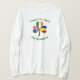 A camiseta personalizada de manga longa para mulheres apresenta as bandeiras da Romênia, Irlanda e Estados Unidos da América (EUA) em várias folhas desta shamrock, projetada para celebrar feriados romenos, Ruas. Dia de Patrick e 4 de julho. Acima estão as palavras TRÊS CULTURAS. Abaixo, UM NOME. As palavras estão em verde escuro, estilo Celta, letras circulares. Adicione seu nome ao local correto para uma aparência personalizada. Para um presente personalizado, adicione o nome de outra pessoa.