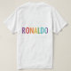 Bold Fanfare: Esta camiseta mostra orgulhosamente o nome "Ronaldo" em um vibrante esquema de multicores. As letras podem ser um arco-íris de tons negros ou usar combinações de cores contrastantes para um efeito dinâmico. Talvez o design incorpore elementos gráficos como bolas de futebol, listras ou um estilizado número 7 (comumente associado a Ronaldo) para sutilmente citar seu esporte. Esta design é uma maneira perfeita para os fãs mostrarem seu apoio ao lendário jogador.
