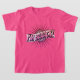 Bonita, rosa, ESTOU BAIXO! De volta à camiseta escolar para crianças. A design mostra as palavras Eu sou BAAACK! em uma tira cômica dentro a wavy banner, com um raio solar no fundo. Esta é uma camiseta de Volta à Escola para vestir no retorno do seu filho, quer ele ou ela esteja se mudando um ano ou tendo que repetir um ano. Os professores querem dar as boas-vindas ao seu filho!
