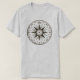 Um rosa de compasso do vintage aponta a maneira neste t-shirt. O compasso de um navegador é perfeito para o capitão. O texto na parte traseira é customizável.
