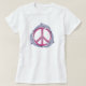 3 golfinhos de gargalo nadando ao redor de um sinal de paz rosa.