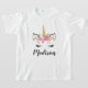 Camiseta Personalizada com Nome e Rosto de Unicórnio com Cílios Presente.