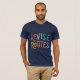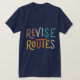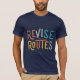 O design de t-shirt mostra a frase "Rotas de Revisão" numa apresentação dinâmica multicor. Cada letra se rompe com uma cor diferente, transmitindo uma sensação de adaptabilidade e abertura de espírito à exploração de novos caminhos.