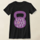 Mantra para cada menina -- "Vivo, amor, elevador!". Caracteriza um design do kettlebell com as palavras mergulhadas em cima dele.