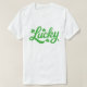 Apresentando a palavra "Lucky" em um belo roteiro verde e acentuado com as camarões, esta design é uma forma eterno de celebrar. Seu estilo simples e limpo facilita o visto e o perfeito para qualquer ocasião.
