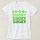 Green Shamrocks Roupa divertida para ela. Três trevos de pedra-do-shamrock com texto verde-escuro e verde-claro.