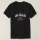 Design de roupa de rua de tendências com texto em negrito **"Los Angeles"** sobre um globo de wireframe rosa, com **"California City"** abaixo e uma citação divertida sobre as estações infinitas da Califórnia.
