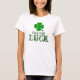 Friccione para a sorte com o trevo de quatro folhas na parte dianteira, e um trevo menor na parte traseira