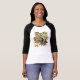 Camiseta feminina mangas raglan 3/4 da Bella+Canvas, Branco/Preto, Adulto G