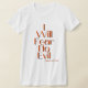 Esta t-shirt feminina apresenta a Escritura bíblia Psalms 23:4 KJV Verdadeiro "Não Receio Mau" numa fonte única com letras laranja, contorno preto e citação bíblia. Esta árvore é confortável, casual e solta, feita a partir de 100% de algodão, com pernas de agulha dupla coçadas e capas de manga para maior durabilidade nossa ajustado camisetas e veste bem em todos.
