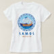 Samos, T-Shirt de Grécia com design de um antigo navio grego e letra grega. Esta design apresenta um navio de Grécia Antigo e o padrão das linhas chave gregas num design circular com o mar e o céu. Este verão a design faz esta camiseta ideal como presente ou lembrança ou para vestir enquanto você está em uma viagem a Samos.