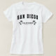 Camiseta branca feminina para mostrar que você está orgulhosa de ser de San Diego. Este design de Camisa-T apresenta "San Diego" em uma fonte tipo laje com "California" e "Ouro State" em fontes de título na moda com palmeiras em ambos os lados.