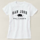Camisa de mulher de San José White com urso pardo e texto curvo em estilo de fonte em laboratório. Esta t-Shirt é excelente se você é de San Jose ou para dar como presente de souvenir a alguém que goste dela.