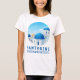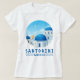 Oia, Santorini feminino camiseta branca design. Este design de ilha grega é apenas para você se você quiser desfrutá-lo enquanto estiver em Santorini. Este design também apresenta uma cena de vista para o mar com gaivotas voando.