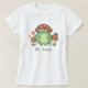 Esta camiseta fofa apresenta um sapo desenhado à mão no estilo kawaii, vestindo um chapéu de cogumelo, juntamente com outros cogumelos, um caracol, uma flor, uma borboleta, e grama. Um esquema de cores de vermelho, limão, verde, marrom, laranja, amarelo e pêssego é perfeito para o amante estético do núcleo do Indie ou Cottage. Personalize o texto, se desejar, para um nome personalizado ou outro texto. Ilustração original de Impressões Orabella.