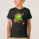 Sapo bonito, colorido que pula entre as flores com um sorriso feliz e amigável em sua cara.