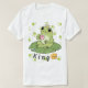 Este design mostra uma sapo sentada sobre uma almofada de lírio com uma coroa ouro na cabeça, segurando uma xícara rosa. O fundo é preto com impressões verdes para toques artísticos. Na parte inferior da design está a palavra "Rei" ao lado de outro símbolo da coroa ouro. O sentimento geral do design é uma mistura de diversão e elegância com um toque real.