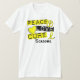 Sarcoma da cura do amor da paz - palavras poderosas a viver perto e esforçar-se para. Compartilhe deste sentimento de inspiração com nossos t-shirt, mercadoria, e presentes do Sarcoma da cura do amor da paz que caracterizam o texto anca da etiqueta, um símbolo de paz, um coração, e a fita amarela do apoio do Sarcoma.