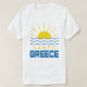 Aproveite este verão com esta camiseta branca dos homens Sarti, luz solar Grécia e ondas marítimas. Esta design apresenta o sol e as ondas de água com Sarti na fonte do estilo grego com uma grande Grécia azul.