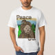 A mão desenhou o Retro pop art Sasquatch ou Bigfoot a fazer um sinal de paz com uma camisa de paz.