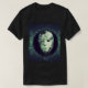 Um retrato surreal e assombroso de uma máscara fraturada suspensa num vazio etéreo escuro. A superfície de manta quebrada reflete texturas geladas, contrastadas por um monóculo balançante e um fio verde solteiro, evocando uma ligação enigmática a forças invisíveis. Abaixo dele, a simples e arrepiante palavra "Olá" convida um encontro inquietante com o desconhecido.
