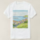 The village sits on a hill overlooking the sea, with a row of colorful houses in shades of yellow, pink, and gray.