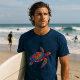 This swimming sea turtle in a colorful retro psychedelic art style has the vintage groovy vibes of the 60's and 70's.