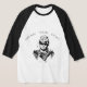 Camiseta Básica, Mangas Raglan 3/4, Branco/Preto, Adulto M