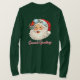 Our Winter edition of Season’s Greetings embraces traditional snowy charm with icy blues, evergreen details, and a bright red cardinal perched against Santa’s timeless smile. Inspired by mid-century greeting cards and nostalgic holiday packaging, this design carries the warmth of old-fashioned Christmas — without feeling dated. Feel free to edit the shirt style & color, or adjust background colors to match your decor!