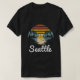 Design do horizonte de Seattle Washington com marcos icônicos, incluindo a Agulha Espacial, o Monte Rainier e o Mercado Pike Place, capturando a essência do charme e beleza únicos da vibrante cidade.