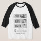 Camiseta Básica, Mangas Raglan 3/4, Branco/Preto, Adulto M