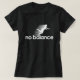Esta design apresenta uma paródia divertida do logotipo da marca esportiva, mostrando uma silhueta de uma pessoa caindo para a frente com linhas de movimento enfatizando o desequilíbrio. Abaixo da figura, o texto em negrito diz "sem equilíbrio", contrastando humoradamente a ideia de estabilidade atlética com desajeitado.