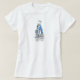Uma senhora está em um tamborete e em peras em um microscópio enorme. Um conceito da investigação científica ou do exame.