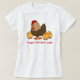 Esta camisa caracteriza uma galinha e três pintinhos do bebê, e o texto customizável, "senhora louca da galinha".