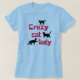 T-shirt louco da senhora do gato. Três ilustrações (silhuetas) dos gatos com o texto que está em uma pia batismal blocky, irregular.