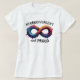 Esta camiseta apresenta um design de conscientização do Autismo ousado e vibrante sobre um fundo branco. O elemento central é um símbolo infinito com textura fluida e artística em tons de azul, roxo, laranja e vermelho, representando o espectro da neurodiversidade. As palavras "Sensibilização para o Autismo" estão incorporadas no círculo infinito, reforçando a mensagem de apoio e aceitação. Acima do símbolo, a frase "NEURODIVERGENT" é escrita em letras grandes e negrito, enquanto que, por baixo, "and PROUD" é apresentada com uma fonte forte semelhante, enfatizando a confiança e a autoaceitação. A design geral é moderna, colorida e empoderadora, celebrando a neurodiversidade com um toque artístico impressionante.