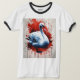 Camiseta Básica Ringer, Branco/Vermelho, Adulto G