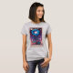 Camiseta relaxada personalizada das mulheres, com flor do mês de nascimento de setembro, a Glória da Manhã, com "setembro: e "Amor, afeto, mortalidade" em um cartão tarot ilustrado.