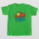Uma camiseta verde-shamrock vibrante para adolescentes que celebram Rosh Hashanah apresenta a legenda "Shana Tova" em uma fonte vermelha e azul animada, festiva. Acima do texto, são apresentadas duas maçãs encantadoras — uma vermelha e uma amarela. A combinação do tecido verde brilhante com as maçãs coloridas cria um design alegre e atraente, perfeito para marcar o feriado com estilo e alegria.