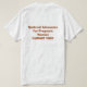 t-shirt do algodão do branco de 100% com as capas curtas, disponíveis nos tamanhos até 4X. A linha logotipo de NAPW na parte dianteira no marrom e "advogados nacionais para as mulheres gravidas" escritas na rotulação marrom na parte traseira.