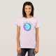 Bright colorful Siesta Key Florida sea shell t-shirt. The shell shape is a moon shell variety, which is beautifully spherical. The shell is depicted in various shades of pinks and purples. The circular background is bright turquoise, bright magenta purple, and green. Siesta Key, Florida is above the framed shell, in light magenta. This nature inspired shirt is the special vacation souvenir you've been looking for.