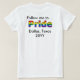 Siga-me para Vestir esta camisa autoconfiante no seu Festival do Orgulho ou Parada ou apenas todos os dias! Design atrás diz: "Siga-me para... Orgulho", com Orgulho em letras arco-íris. Personalize com seu próprio texto - a cidade e o ano, ou mude a mensagem, como quiser!