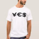 T-shirt da boa sorte e da prosperidade que caracteriza o iene japonês, o euro e o dólar de Estados Unidos. O presente perfeito para um comerciante de Wall Street ou uma pessoa que ame o dinheiro e a finança.