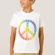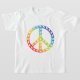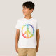 Um símbolo colorido de paz tem elefantes andando dentro.