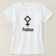 Uma t-shirt branca com o símbolo ( ⚴) de Pallas com texto Pallas por baixo dele. Você pode personalizar esta t-shirt para alterar a cor da fonte, alterar o tamanho e o tipo da letra e muito mais para transformá-la em sua própria t-shirt exclusiva.
