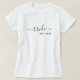 Camiseta moderna minimalista de noiva com "noiva" e data de casamento estabelecida em uma bela tipografia escrita impressa na frente. Uma camisa simples e bonita de noiva em um guião preto e branco chico é o presente perfeito de aniversário ou a manutenção do casamento para a noiva. Faz um chá de panela excelente, festa de solteira ou presente de casamento para a futura noiva!
